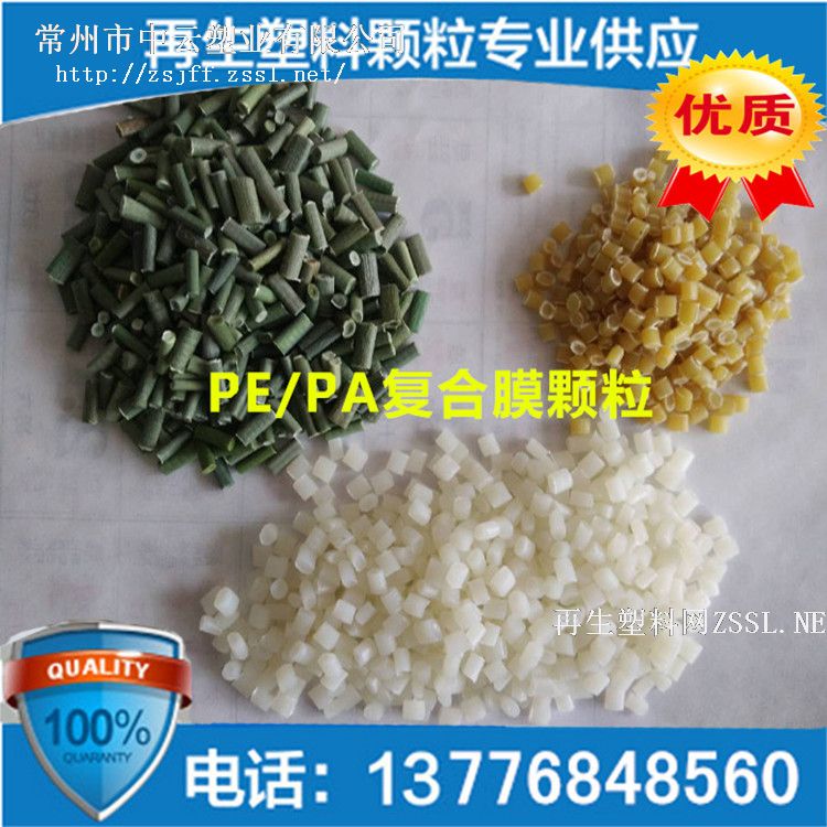 本厂长期对外供应一级PE+PA再生复合颗粒, PE复合尼龙再生料, 材料采用干净印刷膜边角料造粒, 用于生产打包带,塑胶制品,增韧剂 ,尼龙产品添加剂,此料广泛用于各类注塑,压板,拉管,吹塑,花盆,路锥,塑木,改性等产品,质量稳定,长期有货!过60目滤网,料底干净无杂质,无填充,灰分低,韧性好,价格也合理是这个产品最大的特点,欢迎新老客户来电咨询,咨询电话13776848560赵经理